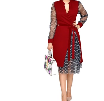 2025新款lb爆款女中年商务连衣裙气质圆点网眼数码印花天然腰线2件